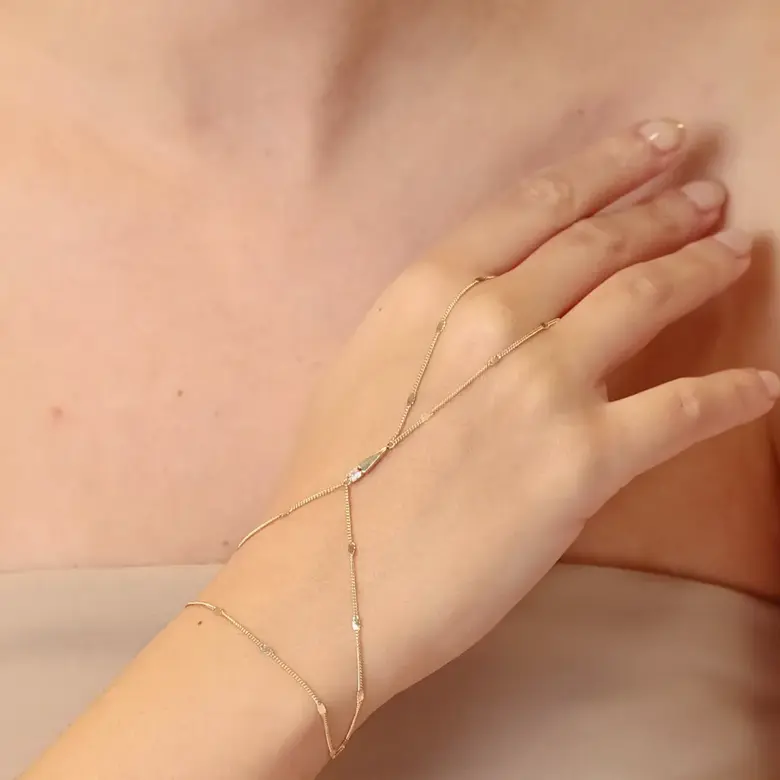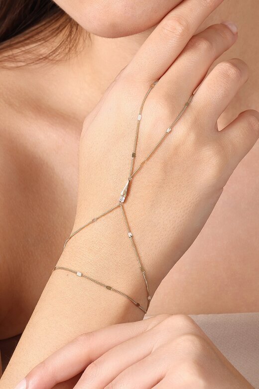 MERSİ Taşlı Uzun Üçgenli Aynalı Zincir Tek Tur Şahmeran