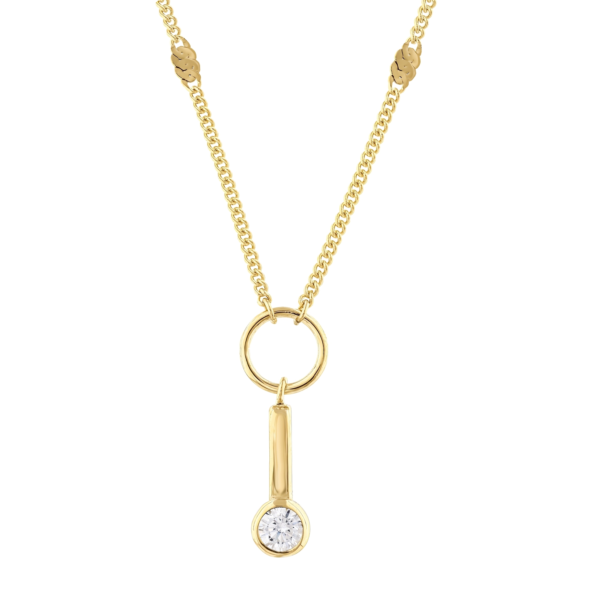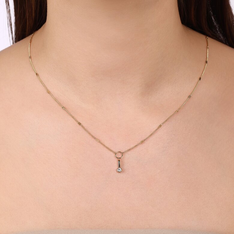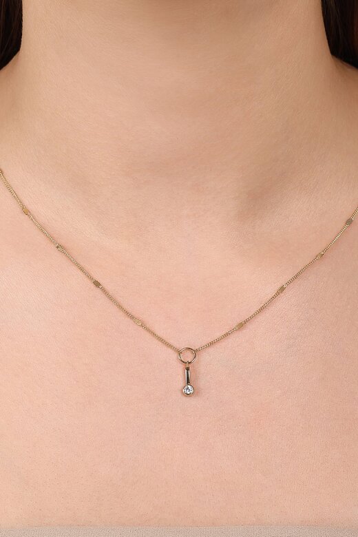 MERSİ Yuvarlak Taşlı Çubuklu Aynalı Zincir Halkalı Kolye