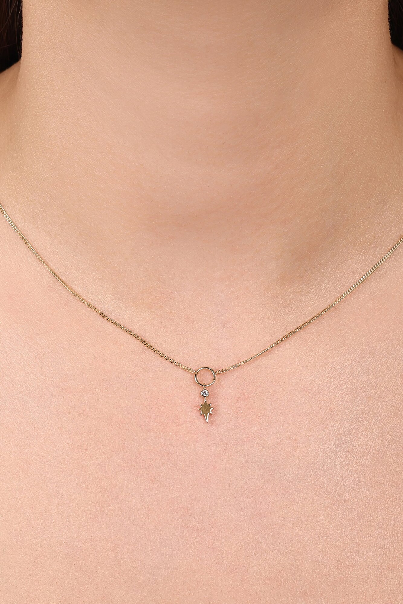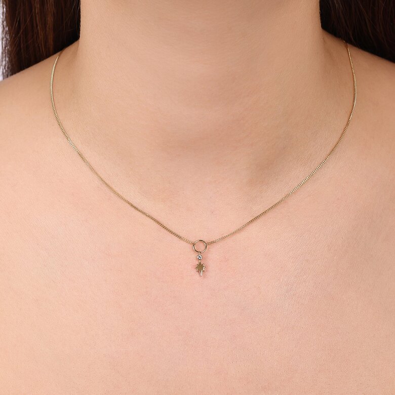 MERSİ Minimal Taşlı Kutup Yıldızı İnce Gurmet Zincir Halkalı Kolye