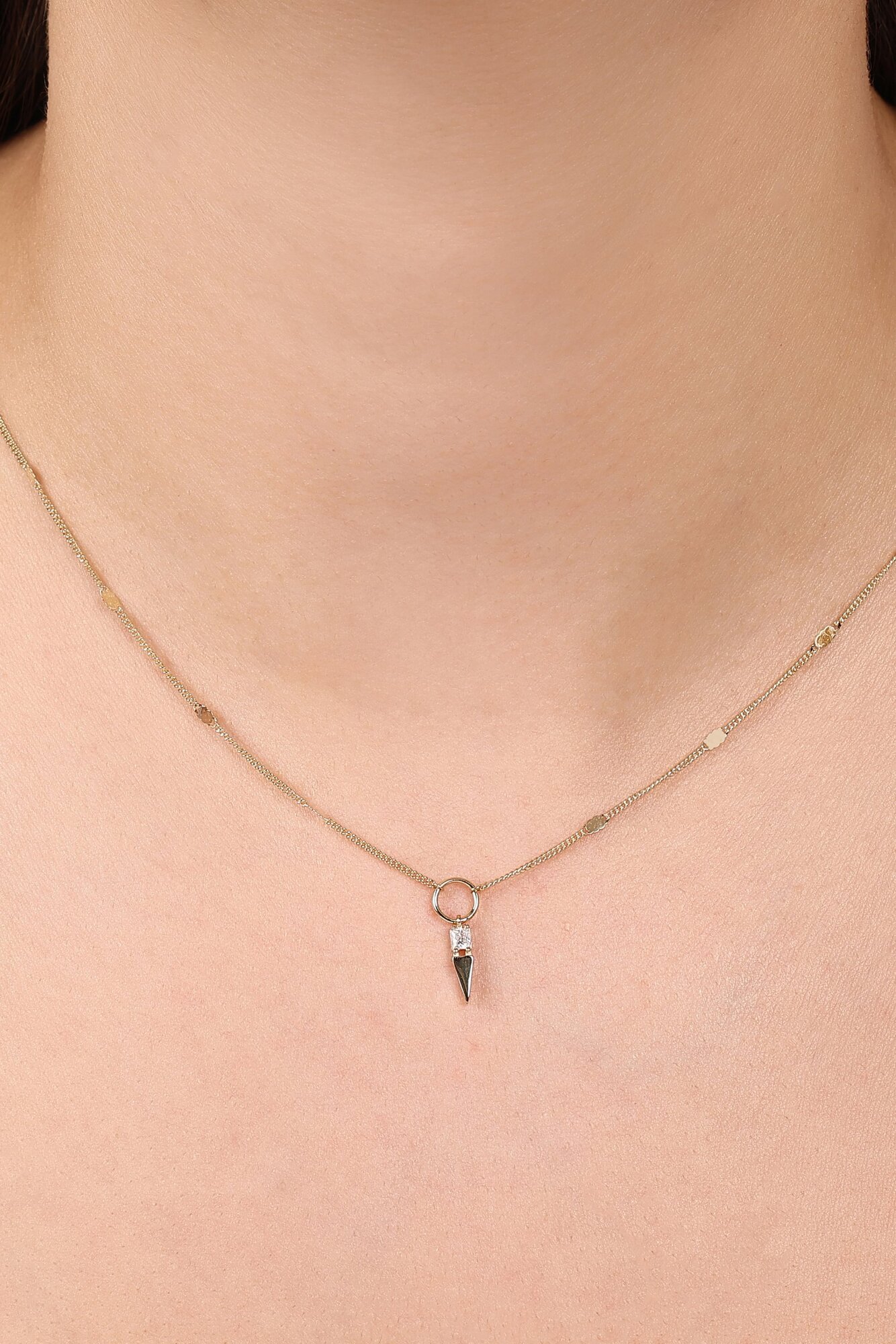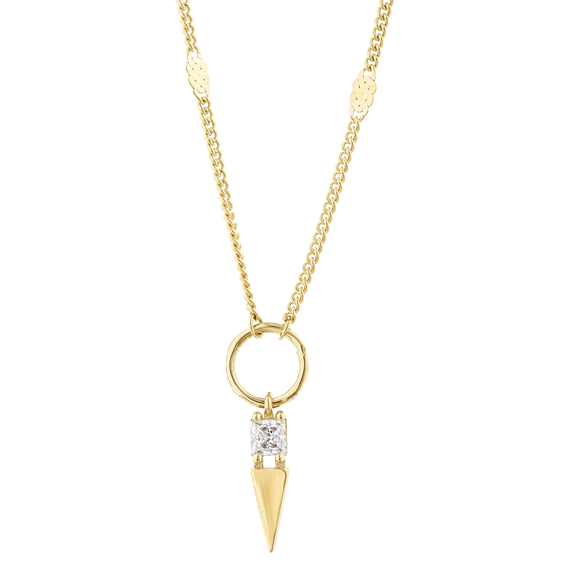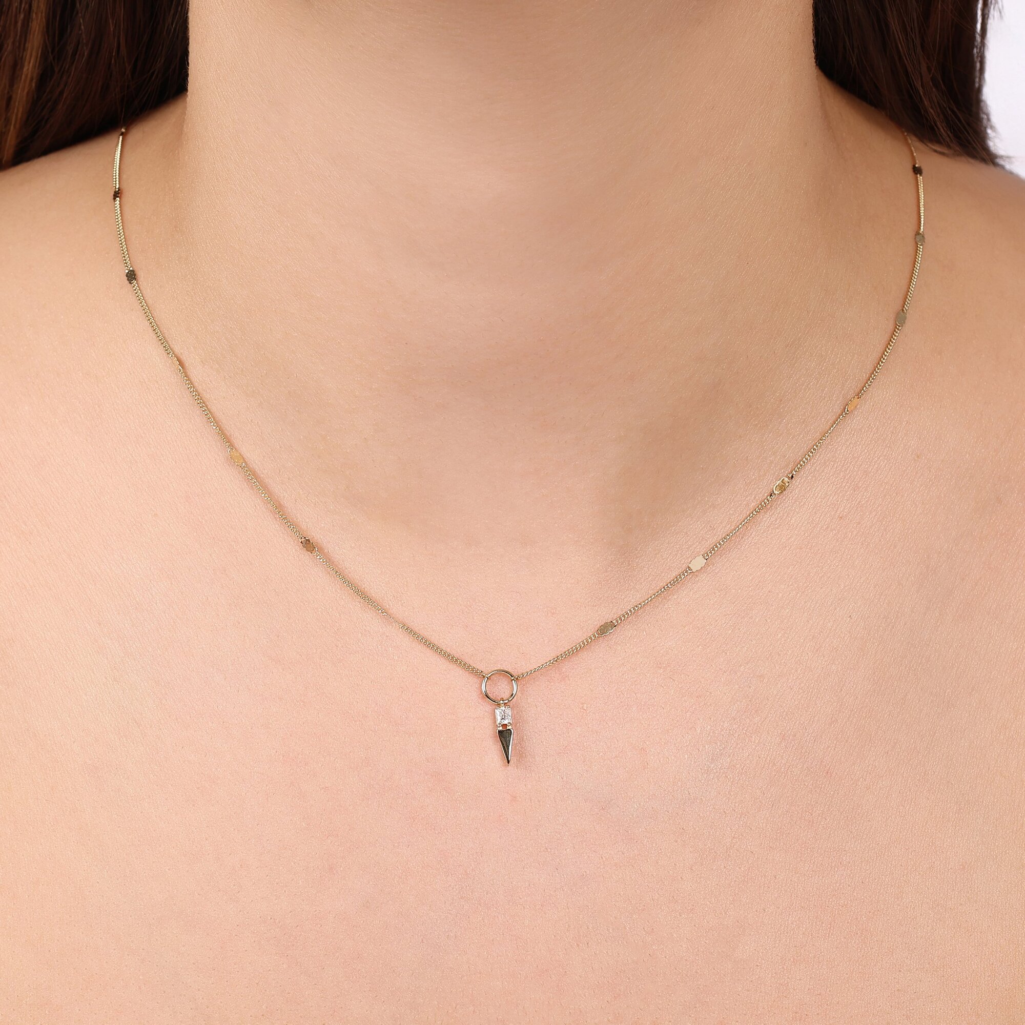 MERSİ Kare Taşlı Kısa Üçgenli Aynalı Zincir Halkalı Kolye