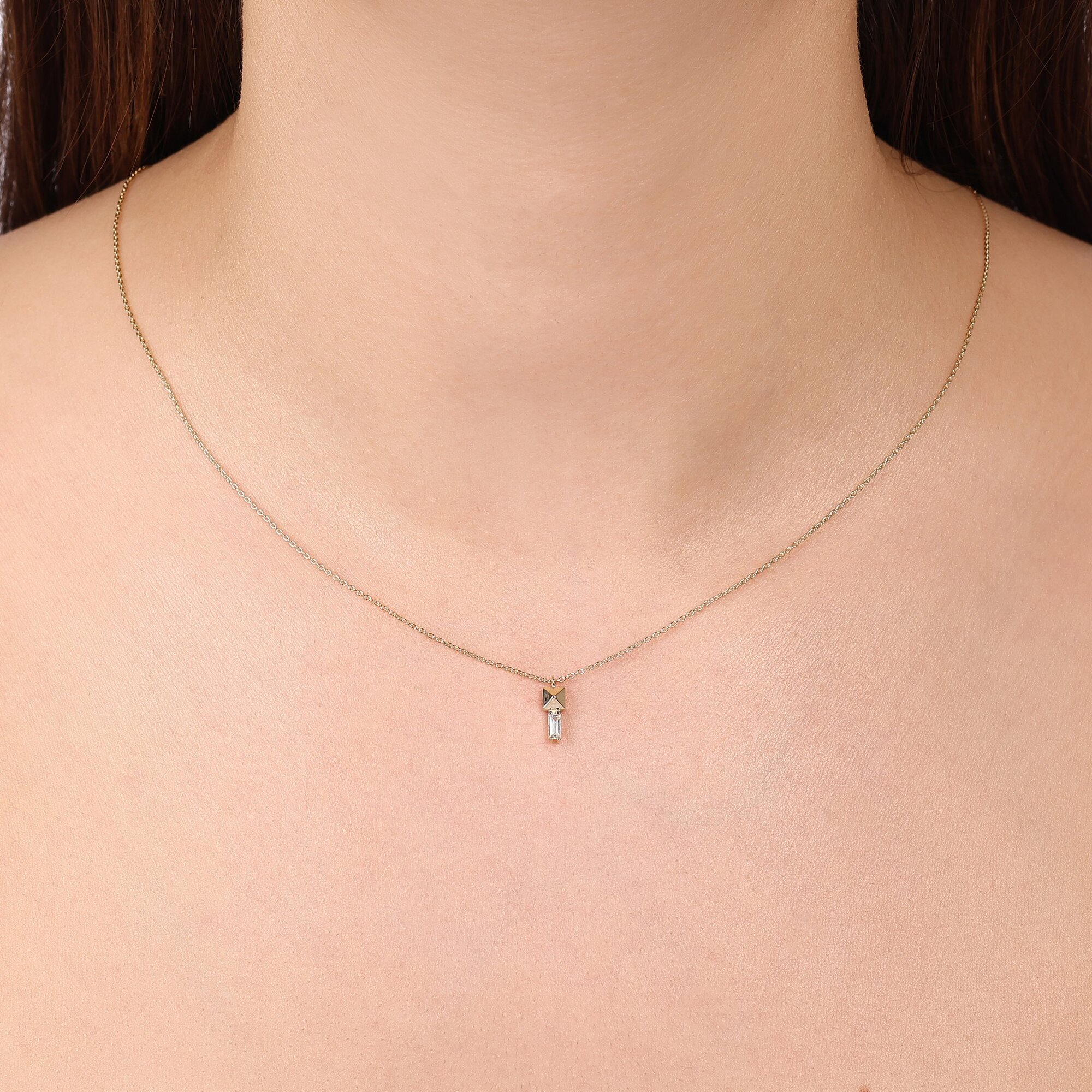 MERSİ Baget Taşlı Kare Piramit Kolye