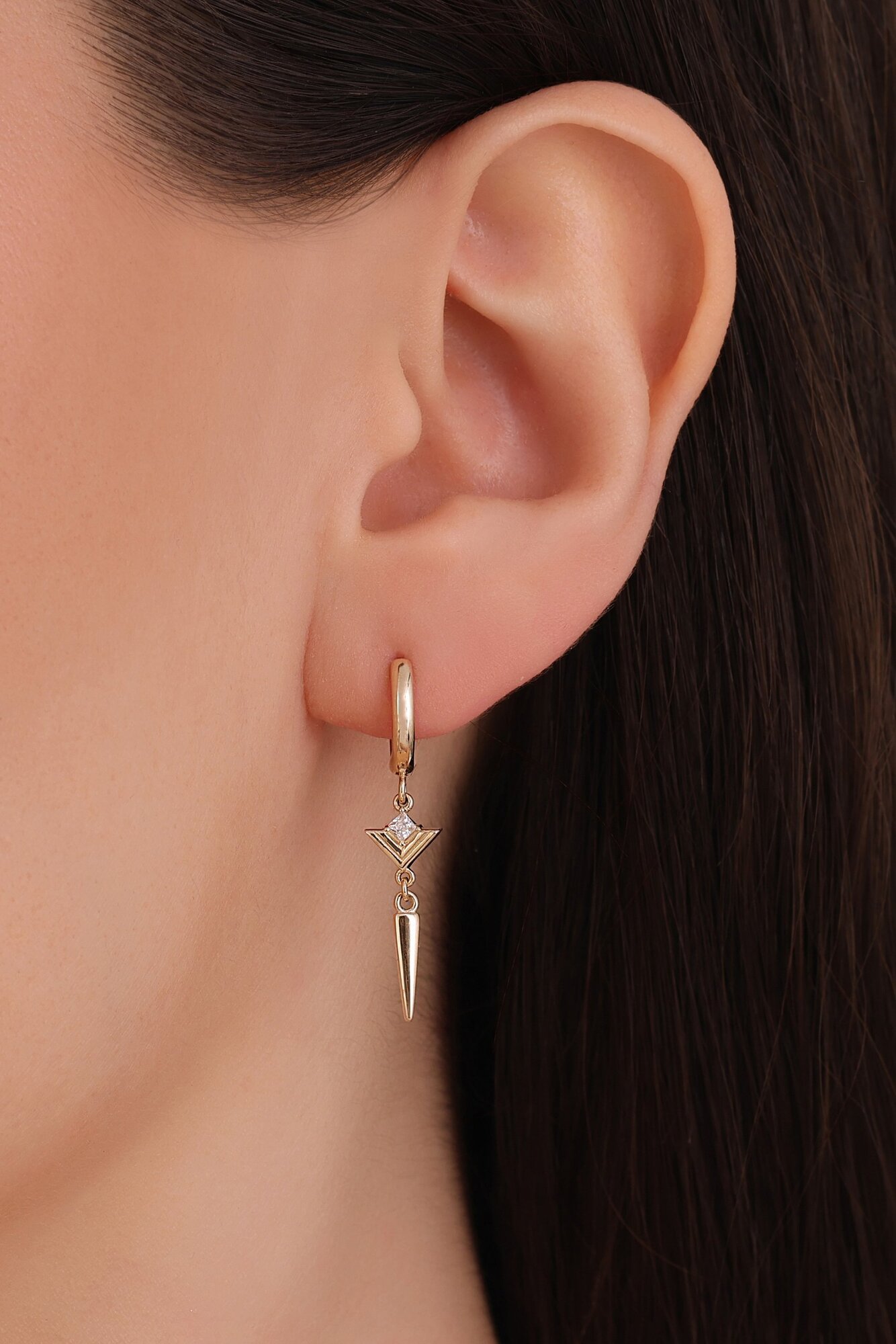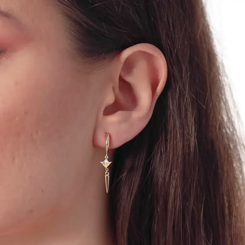 MERSİ Taşlı Üçgen Düz Çubuklu Halka Küpe